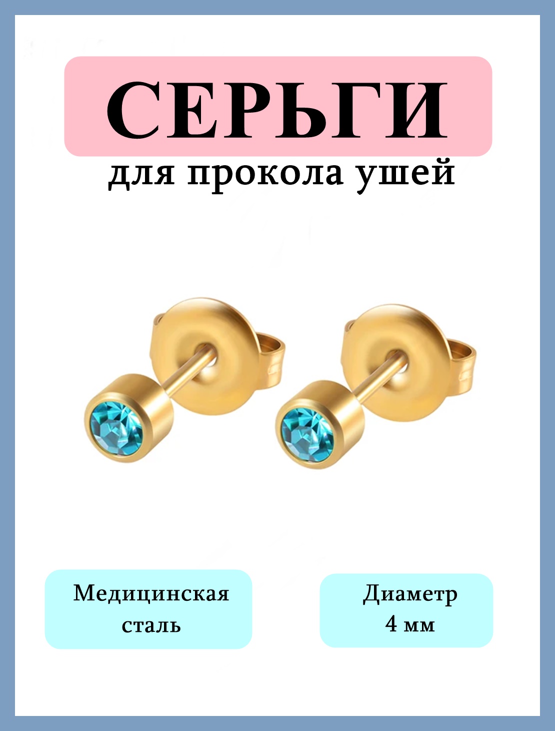 Простые и комфортные серьги-гвоздики идеально подходят для комфортного первого прокола ушей пистолетом. Использовать можно Studex System R993 и Caflon Gold. Изготовлены из гипоаллергенного материала, безопасны и удобны. Размер кристалла 4 мм или R- 4 мм (средний). Золотистый цвет сережек с синей кристаллической вставкой подчеркивает элегантность изделия. Идеальный выбор для нежной кожи детей и взрослых. Максимальное удобство и безопасность – ваш здоровый образ жизни!