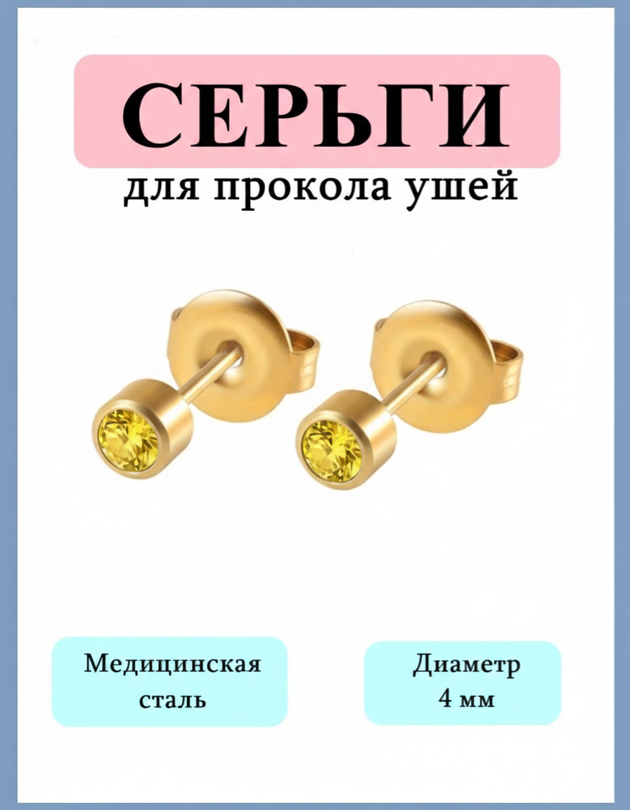 Простые и комфортные серьги-гвоздики идеально подходят для комфортного первого прокола ушей пистолетом. Использовать можно Studex System R993 и Caflon Gold. Изготовлены из гипоаллергенного материала, безопасны и удобны. Размер кристалла 4 мм или R- 4 мм (средний). Золотистый цвет сережек с желтой кристаллической вставкой подчеркивает элегантность изделия. Идеальный выбор для нежной кожи детей и взрослых. Максимальное удобство и безопасность – ваш здоровый образ жизни!