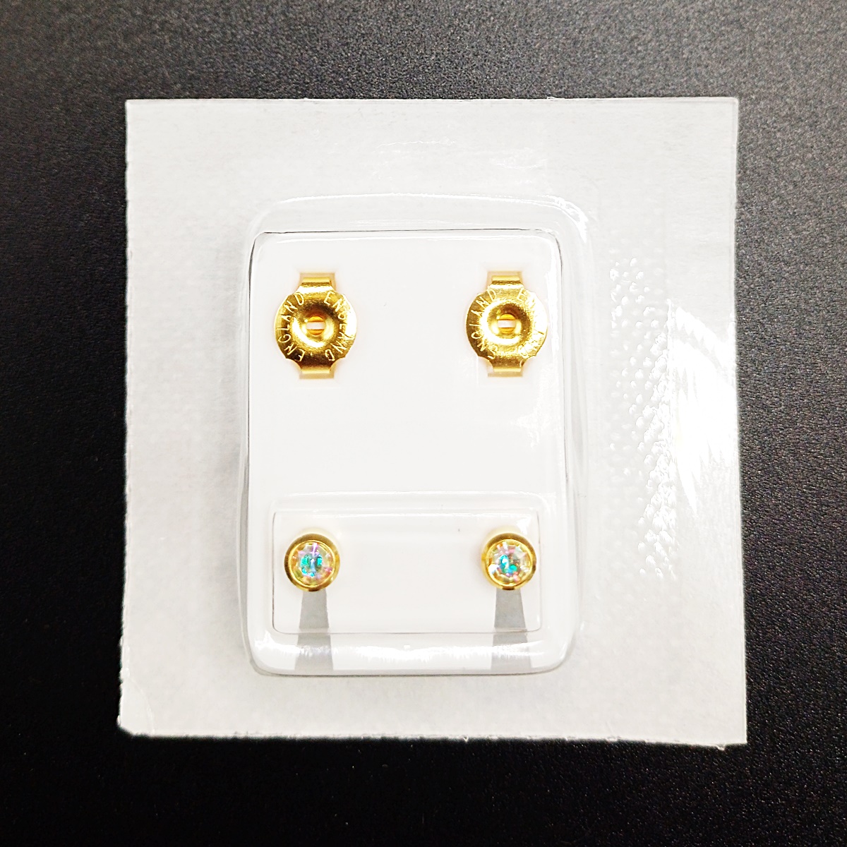 Простые и комфортные серьги-гвоздики идеально подходят для комфортного первого прокола ушей пистолетом. Использовать можно Studex System R993 и Caflon Gold. Изготовлены из гипоаллергенного материала, безопасны и удобны. Размер кристалла 4 мм или R- 4 мм (средний). Золотистый цвет сережек с радужной кристаллической вставкой подчеркивает элегантность изделия. Идеальный выбор для нежной кожи детей и взрослых. Максимальное удобство и безопасность – ваш здоровый образ жизни!