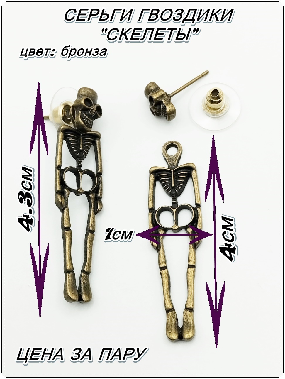 Серьги в форме скелетов привлекают к себе внимание оригинальным дизайном. Они здорово подчеркнут Ваш стиль и станут прекрасным дополнением к готическому образу.