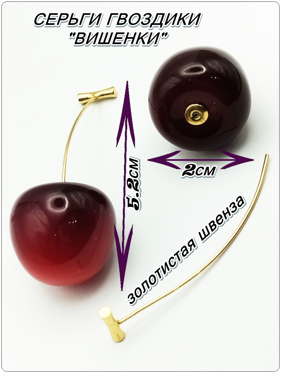 Высота серьги 5.2см. Диаметр вишенки 2см.