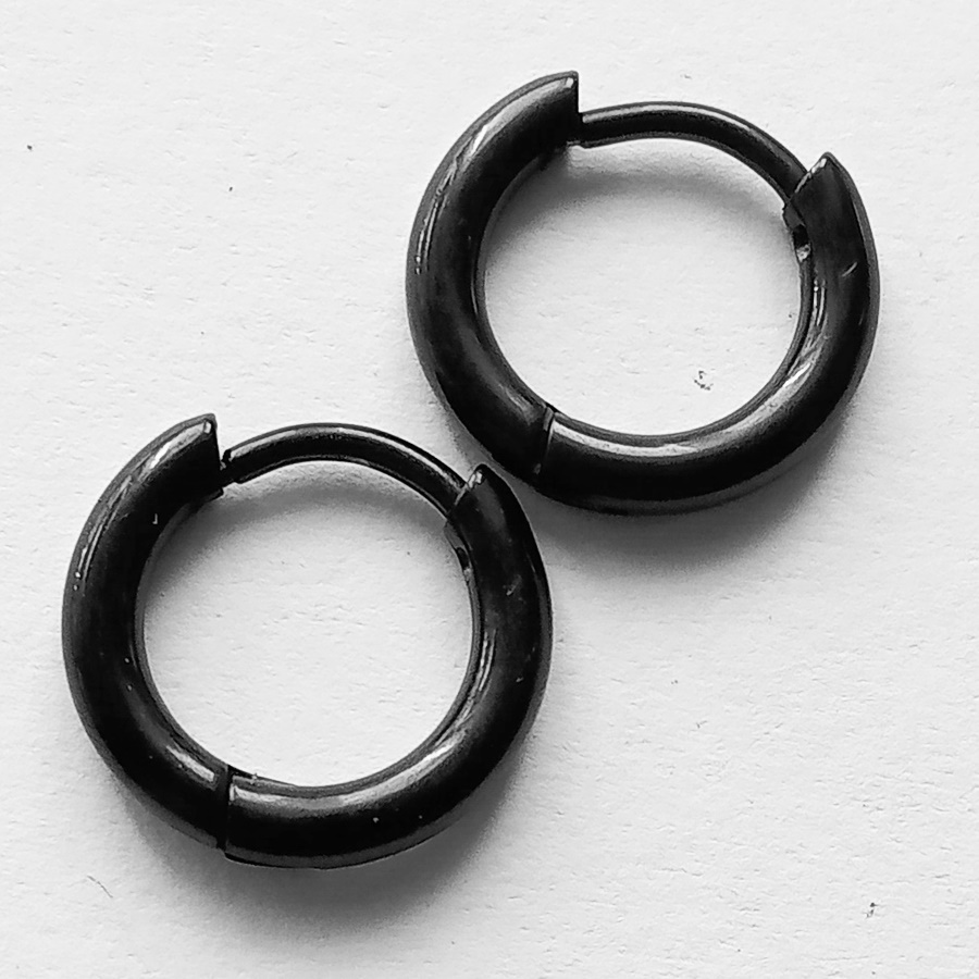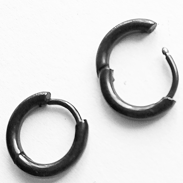 Серьги ― кольца для пирсинга ушей из медицинской стали. Черные