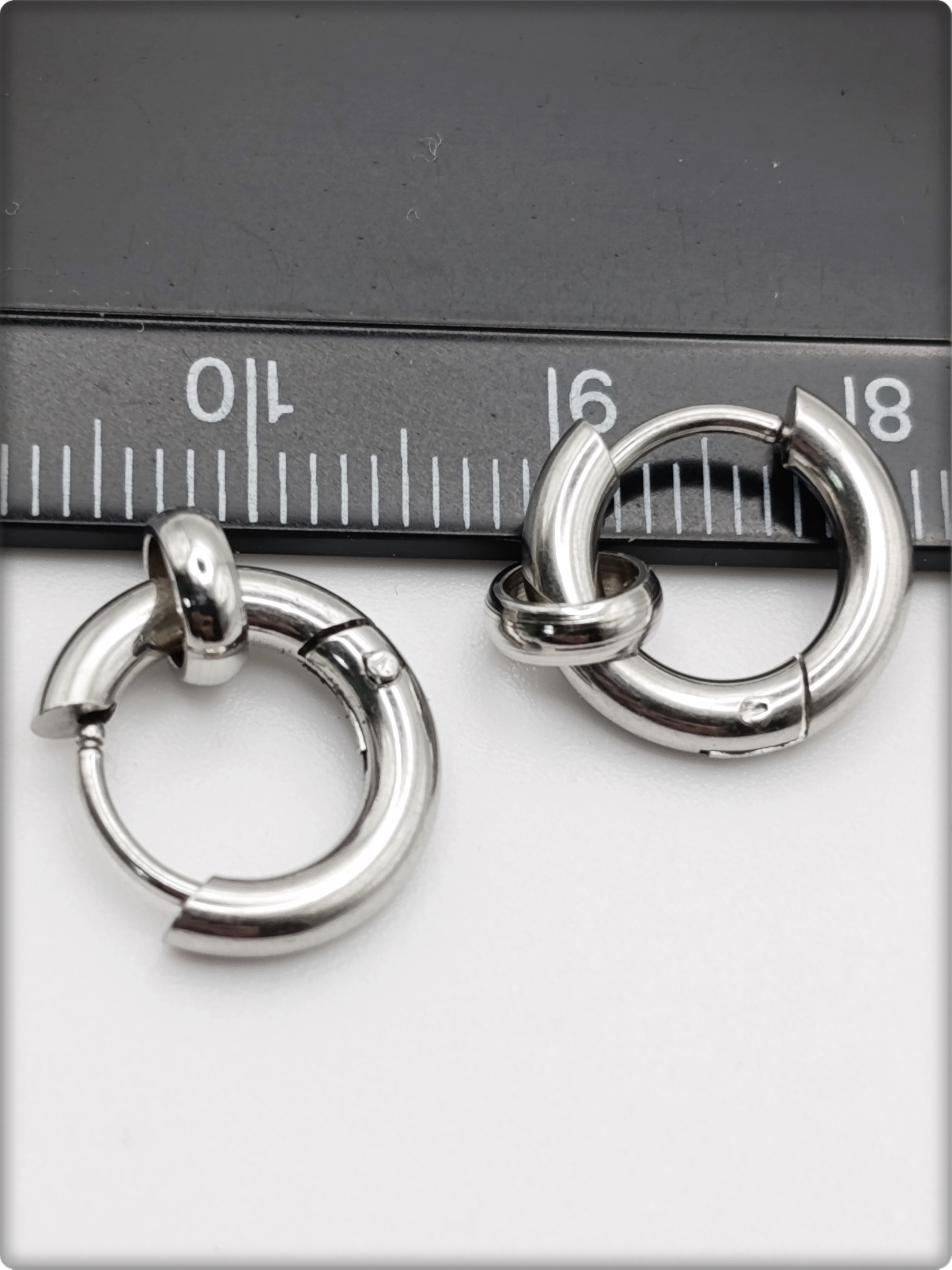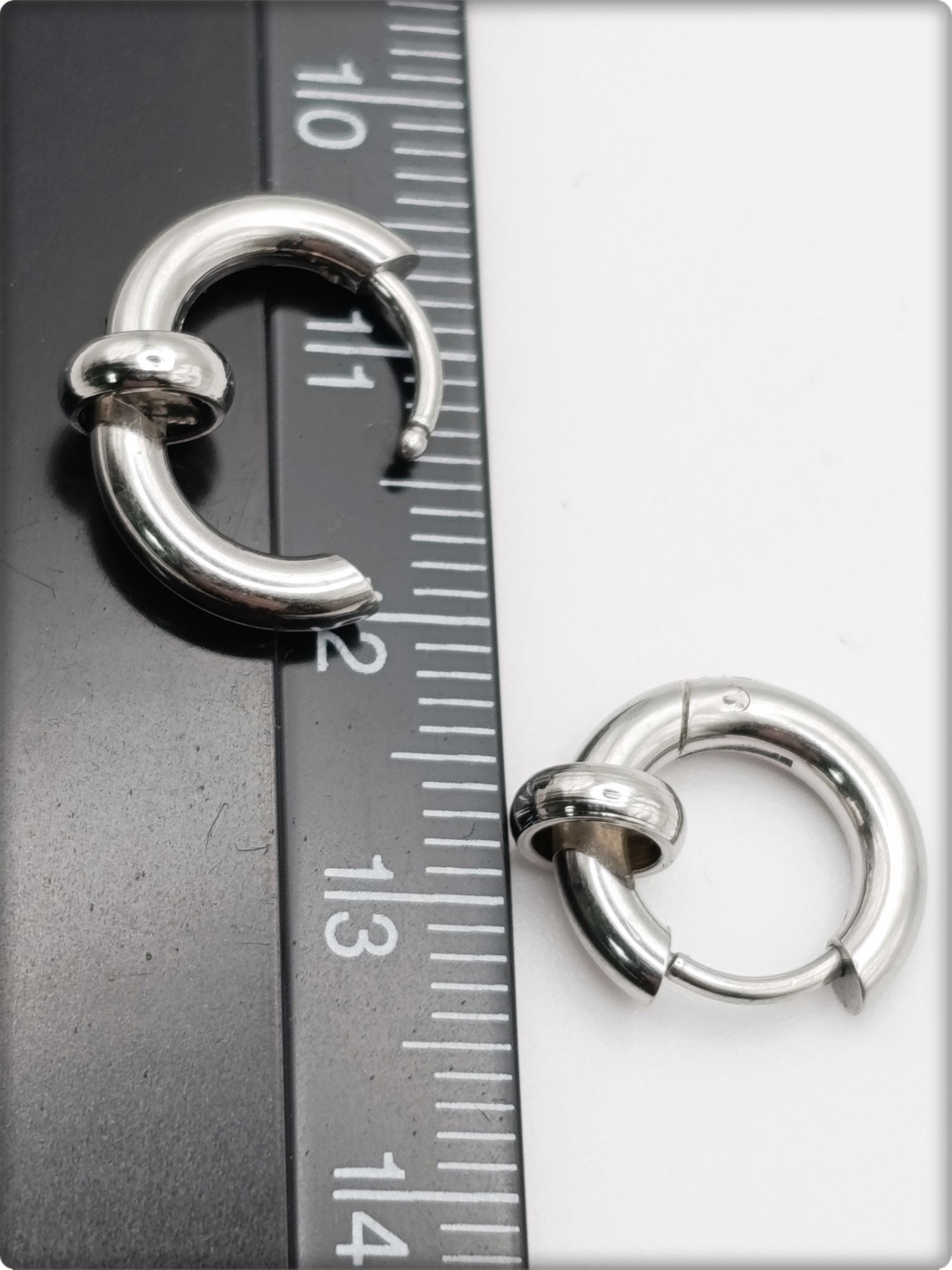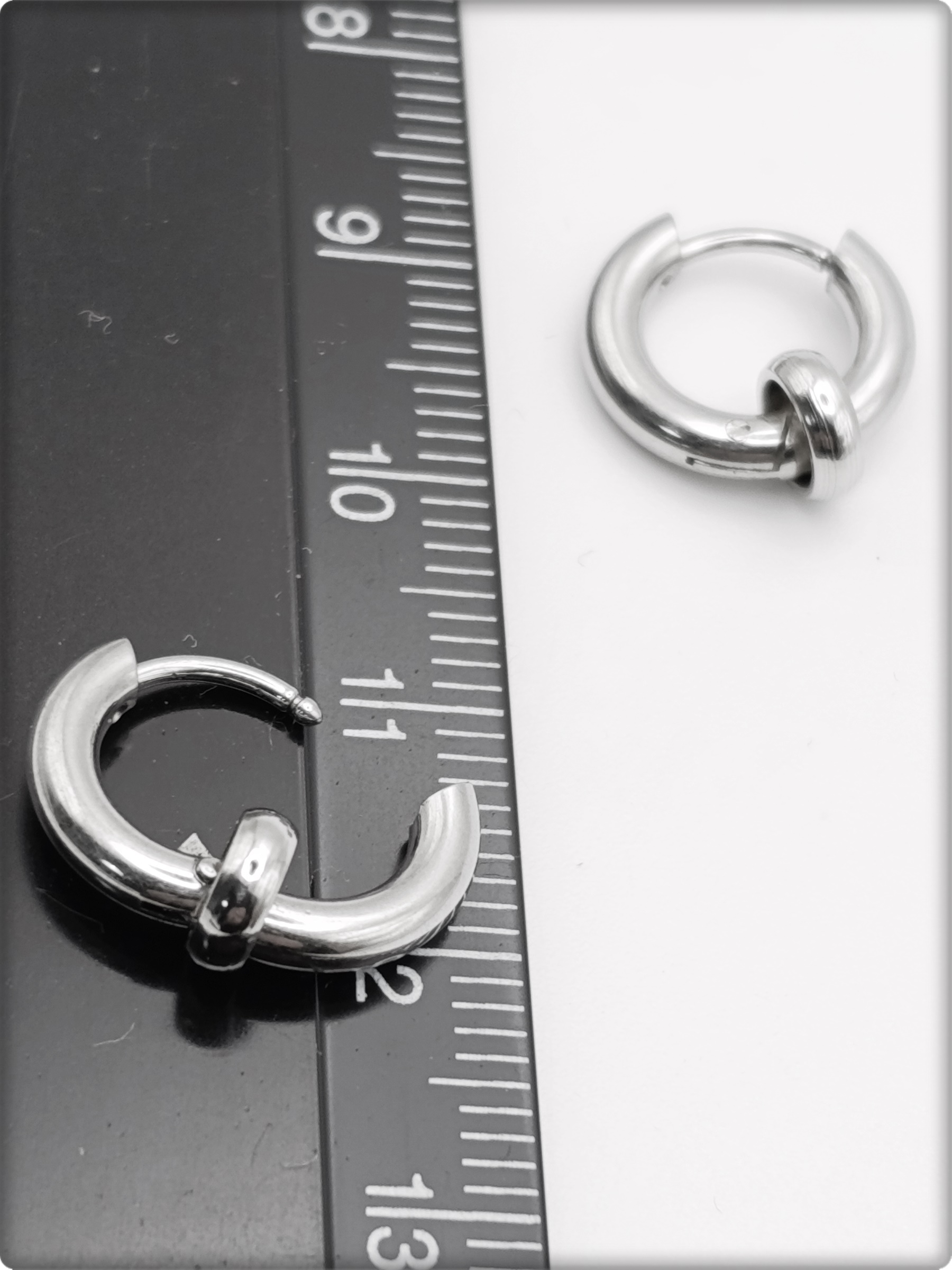 Диаметр серьги 8мм (внутренний), толщина 2.5мм, толщина стержня 1мм.