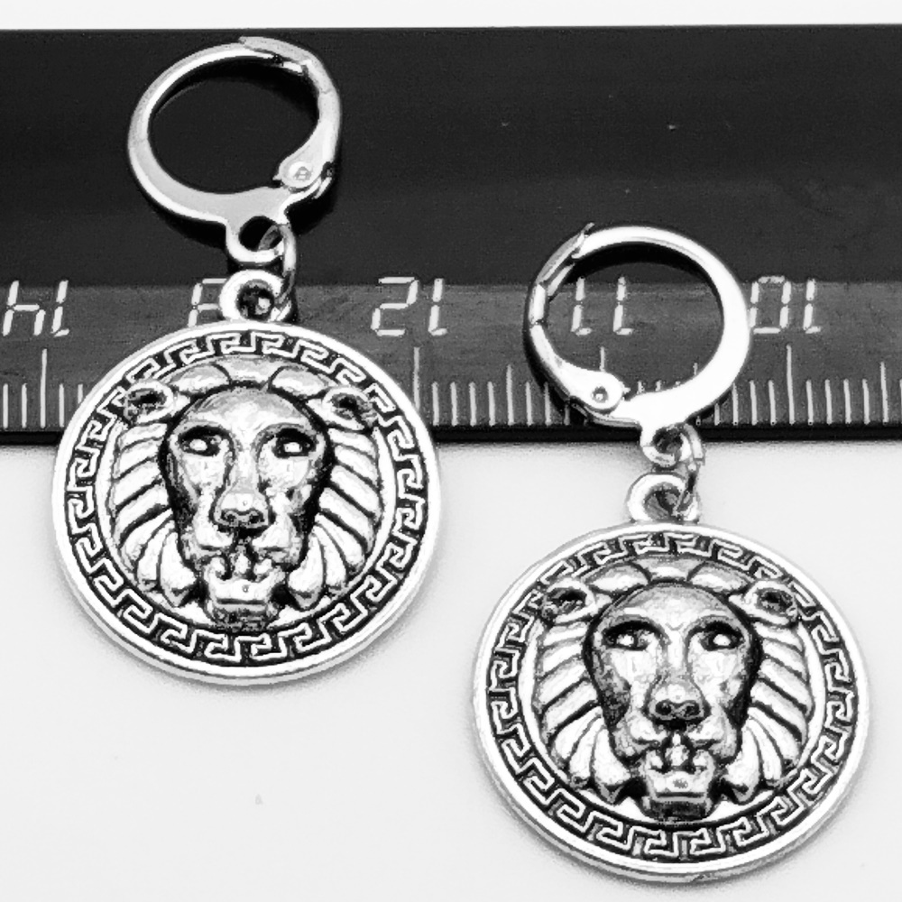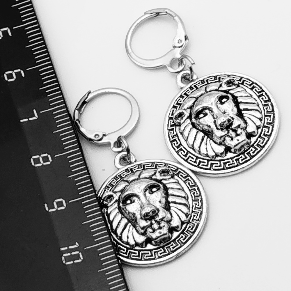 Серьги кольца с подвеской "Лев".