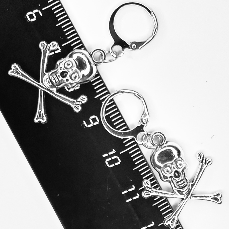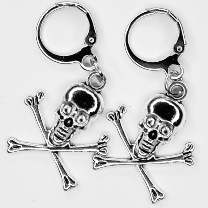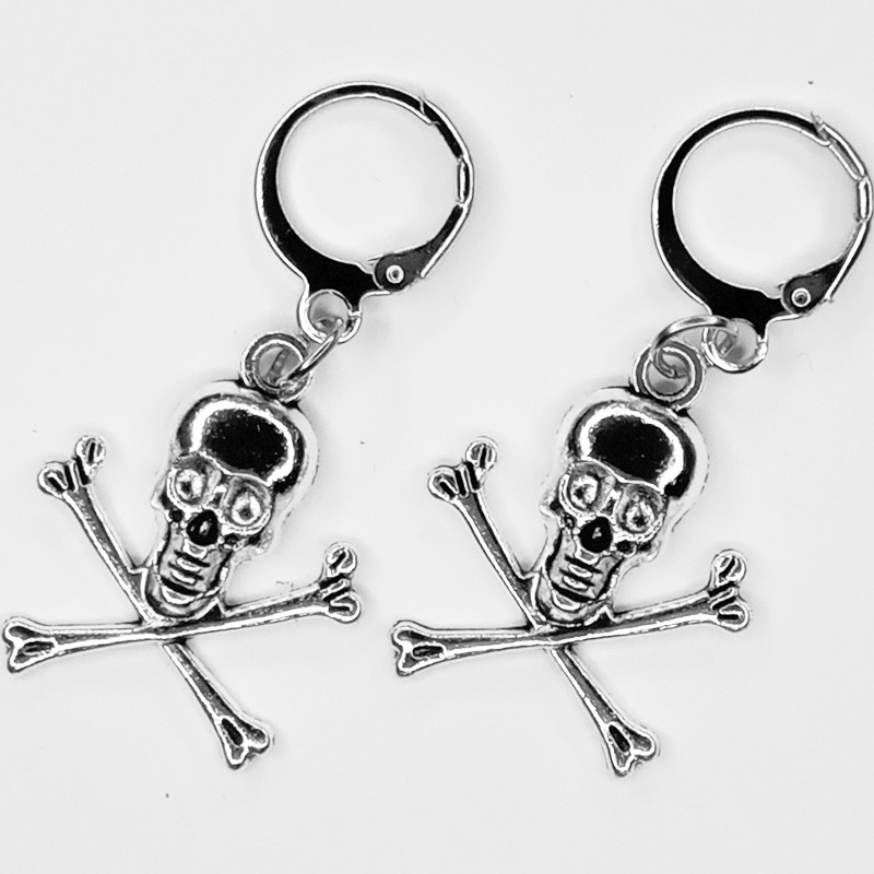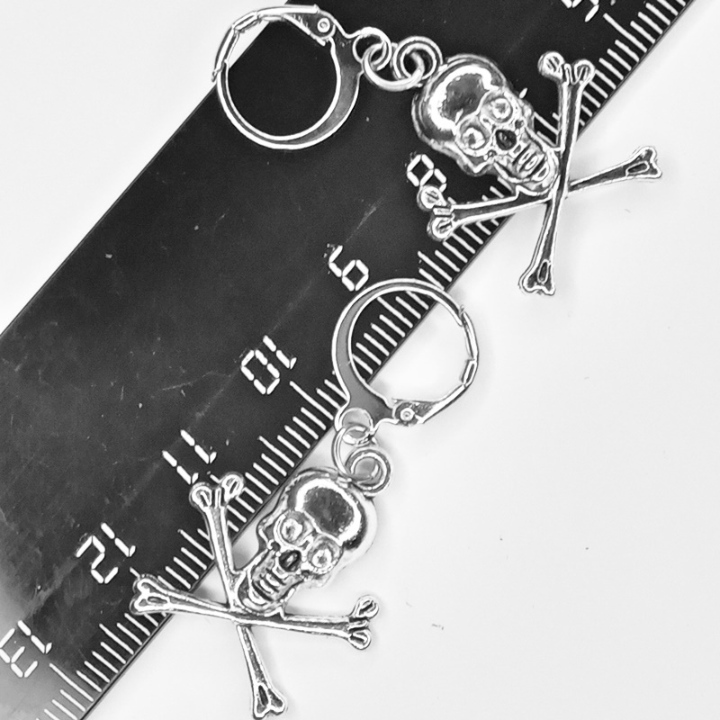 Серьги кольца с подвеской "Скелет с костями".