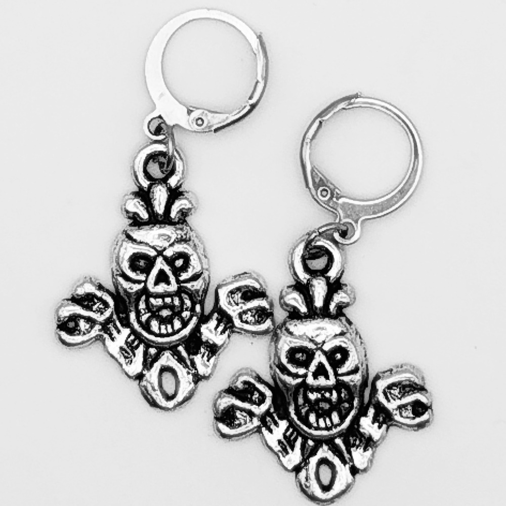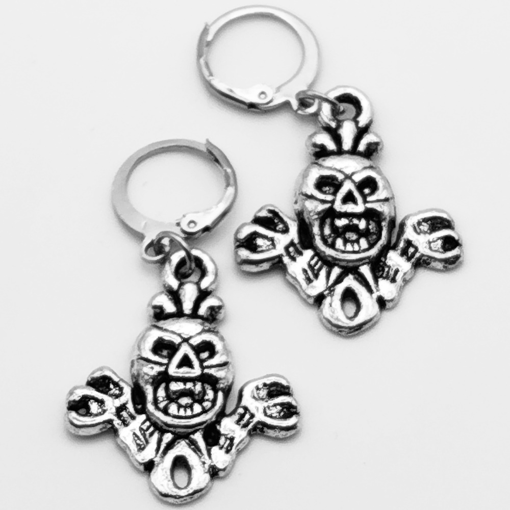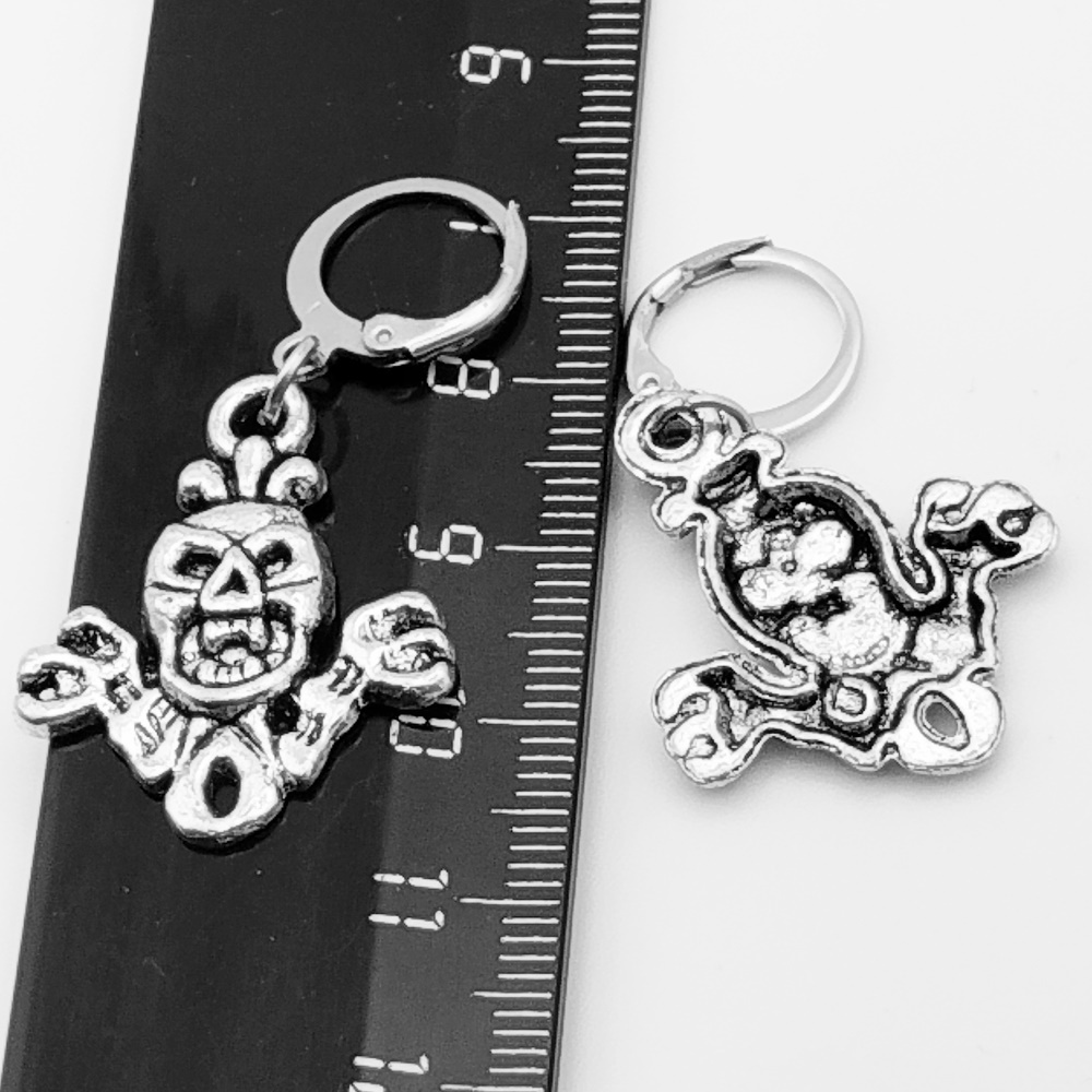 Серьги кольца с подвеской "Скелеты".
