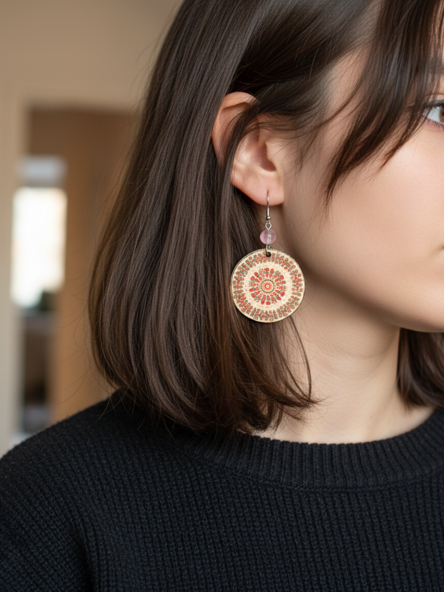 Изящные серьги из дерева диаметром 3,5 см – это уникальные изделия ручной работы, выполненные в традиционной мезенской росписи. Каждый элемент декора пропитан теплом рук мастера и очарованием русского народного искусства. Эти серьги станут изысканным дополнением к образу любительниц этнического стиля и натуральных материалов! Нежное сияние природы и тонкая изящность узоров подарят вам уверенность и подчеркнут индивидуальность.
