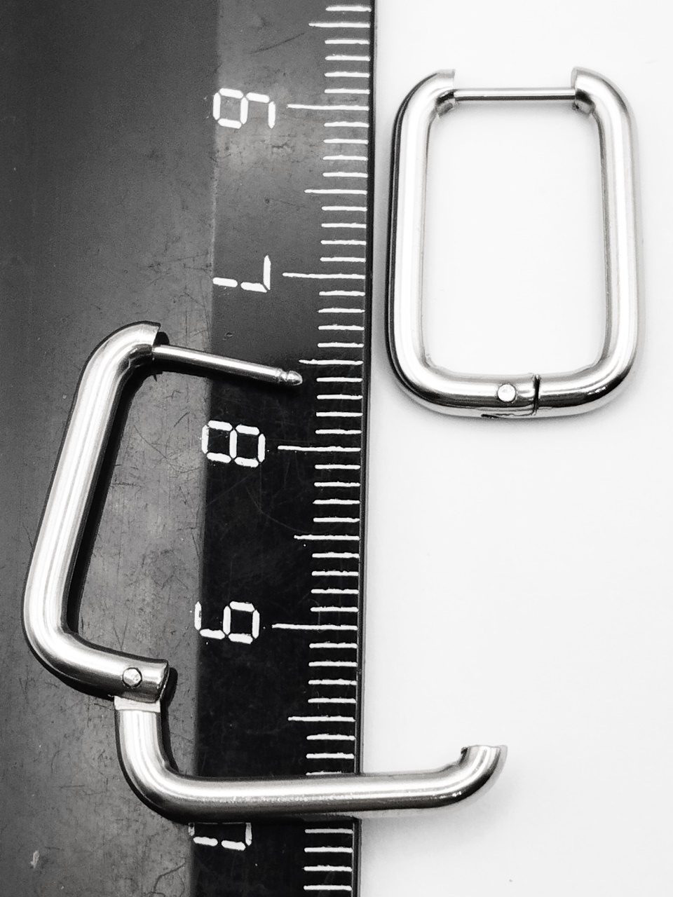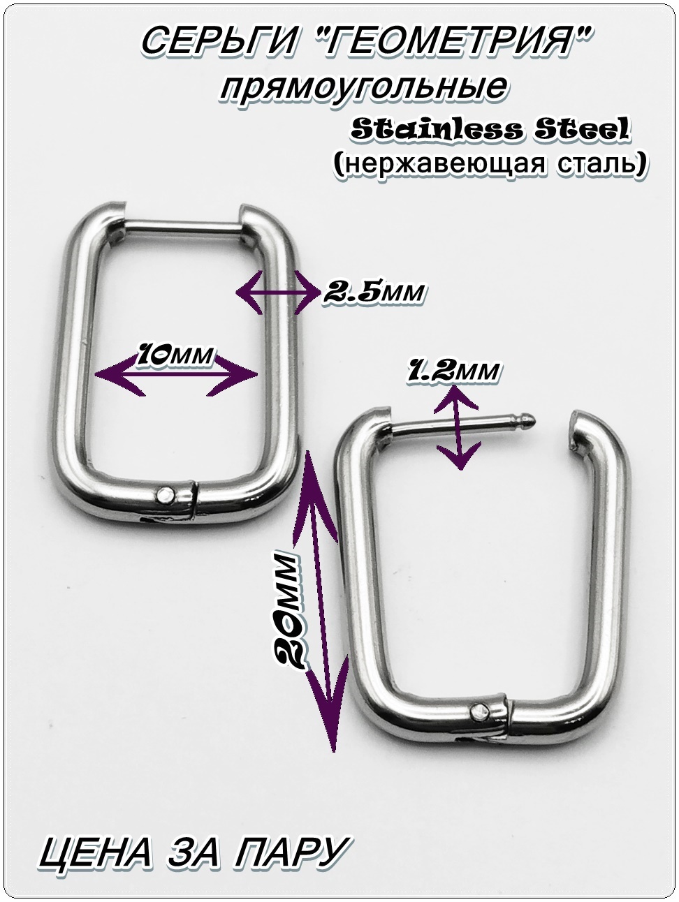 Размер серьги наружный: ширина 15мм, высота 20мм. Толщина 2,5мм, толщина стержня 1.2 мм.
