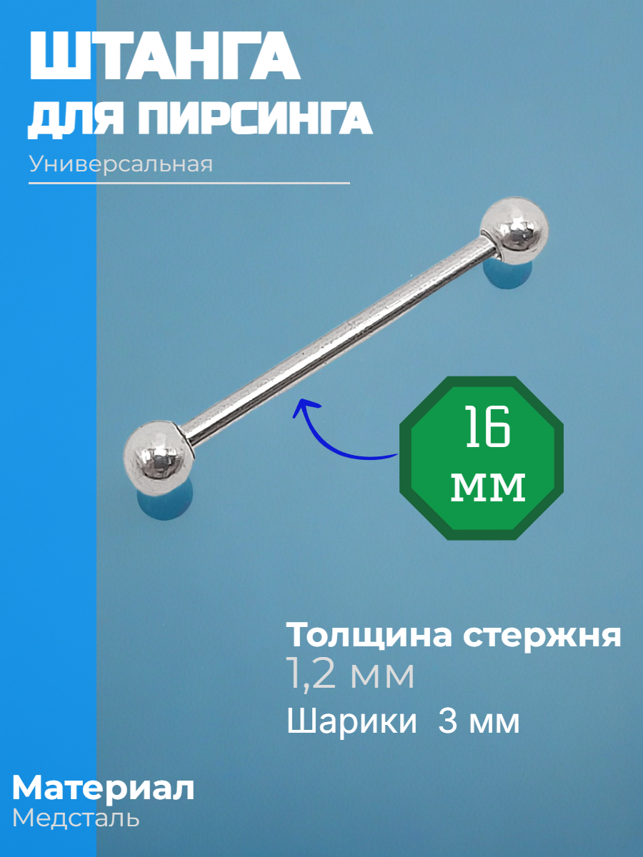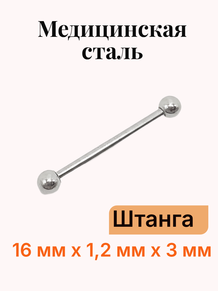 Штанга 16 мм для пирсинга. Медицинская сталь.