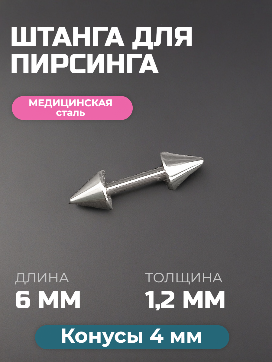 Длина штанги 6 мм, толщина 1,2 мм. Диаметр конусов 4 мм.