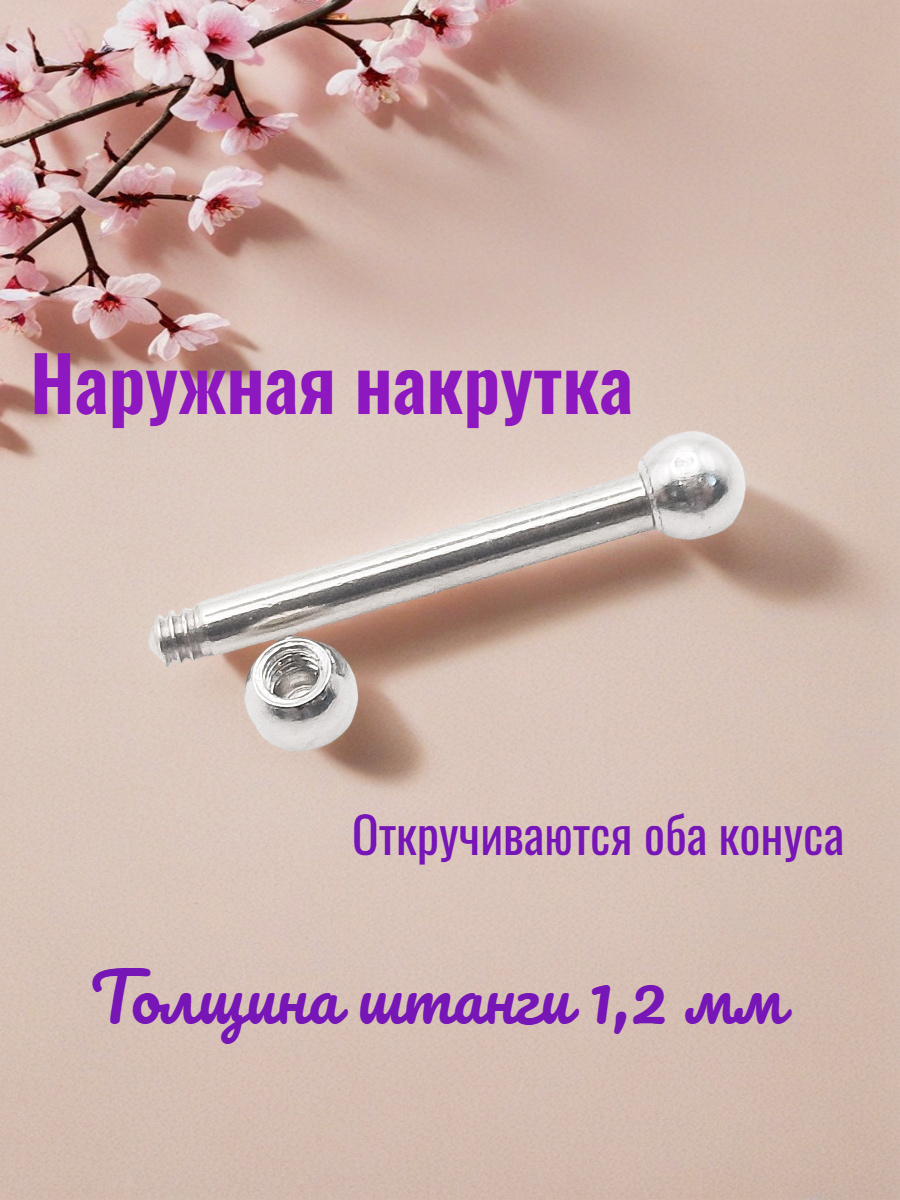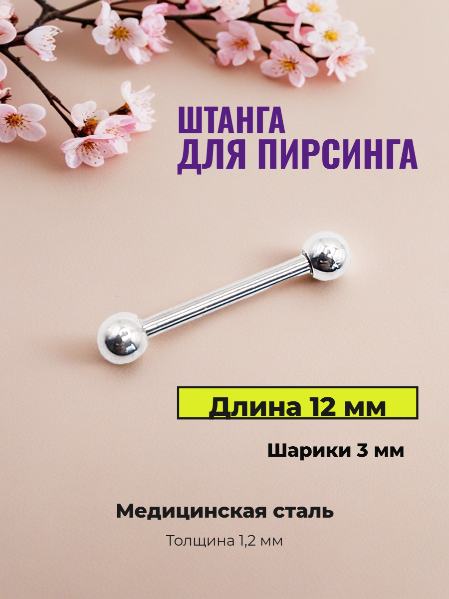 Назначение: для украшения прокола сосков. Материал: 316L хирургическая нержавеющая сталь. Длина 12 мм, толщина 1.2 мм. Диаметр шариков 3 мм.