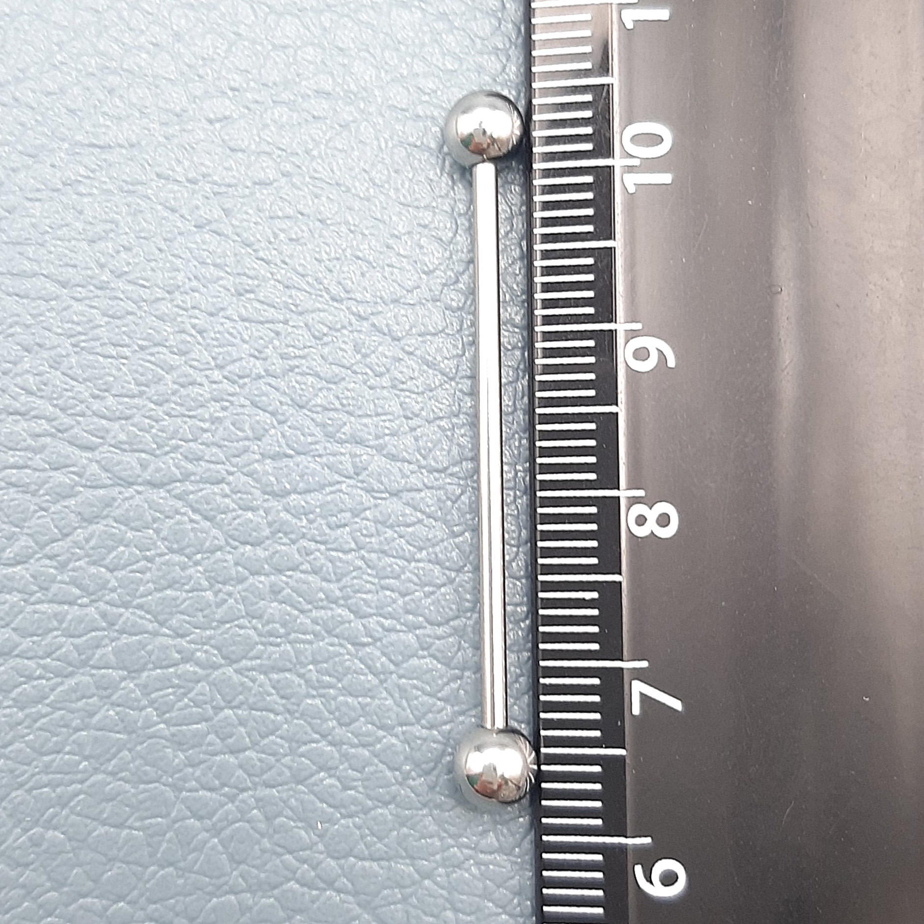Индастриал 34 мм для пирсинга ушей. Медицинская сталь. Цена за одну штуку! Серьга для соединения двух проколов уха. Материал: сталь 316L. Штанга: длина 34 мм, толщина 1.6 мм. Шарики откручиваются с двух сторон. Диаметр шарика 5 мм