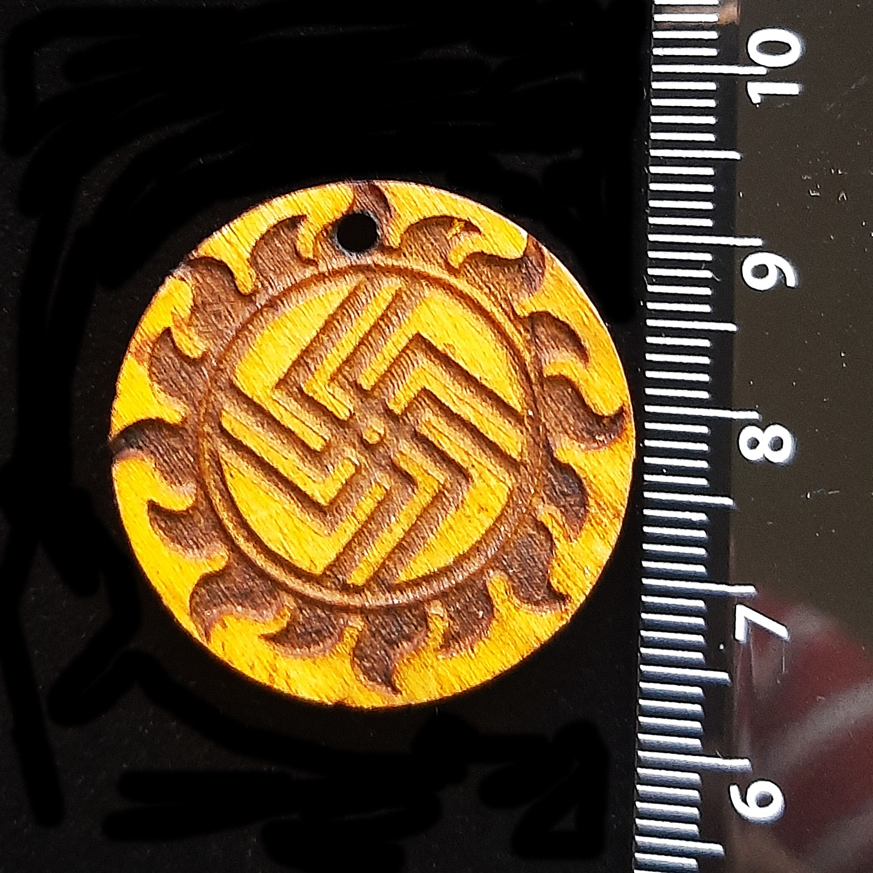 Славянский символ высшей мудрости " Небесный вепрь" материал ― дерево ― ясень, шнур ― вощеный хлопок диаметр ― 3 см Небесный вепрь - знак единства прошлого и будущего, материального и духовного. Это символ высшей мудрости, прощающий ум, влияющий на движение времени в жизни человека, на исполнение его желаний. Загадайте желание и носите его с собой, пока задуманное не исполнится.