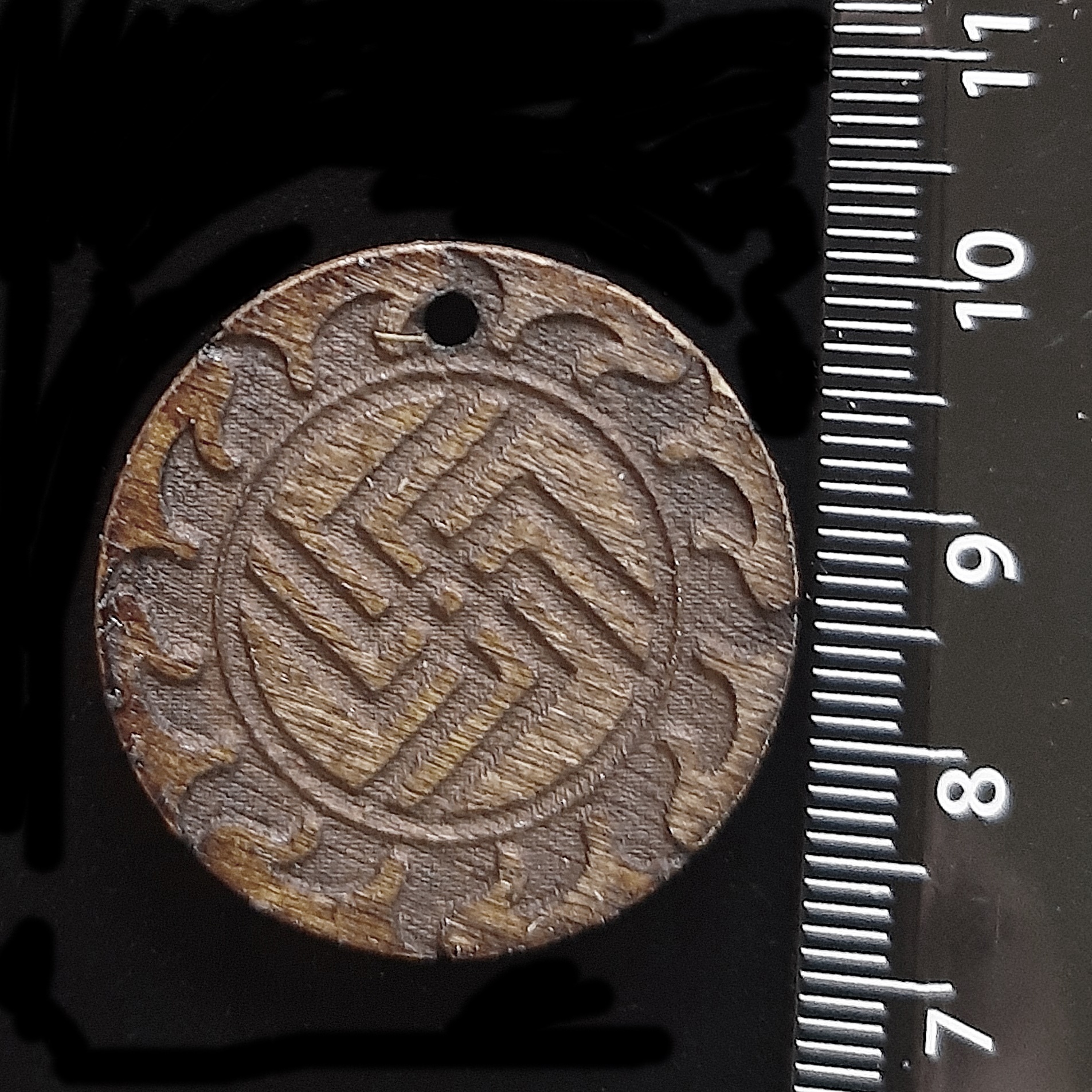 Славянский символ высшей мудрости " Небесный вепрь" материал ― дерево ― ясень, шнур ― вощеный хлопок диаметр ― 3 см Небесный вепрь - знак единства прошлого и будущего, материального и духовного. Это символ высшей мудрости, прощающий ум, влияющий на движение времени в жизни человека, на исполнение его желаний. Загадайте желание и носите его с собой, пока задуманное не исполнится.
