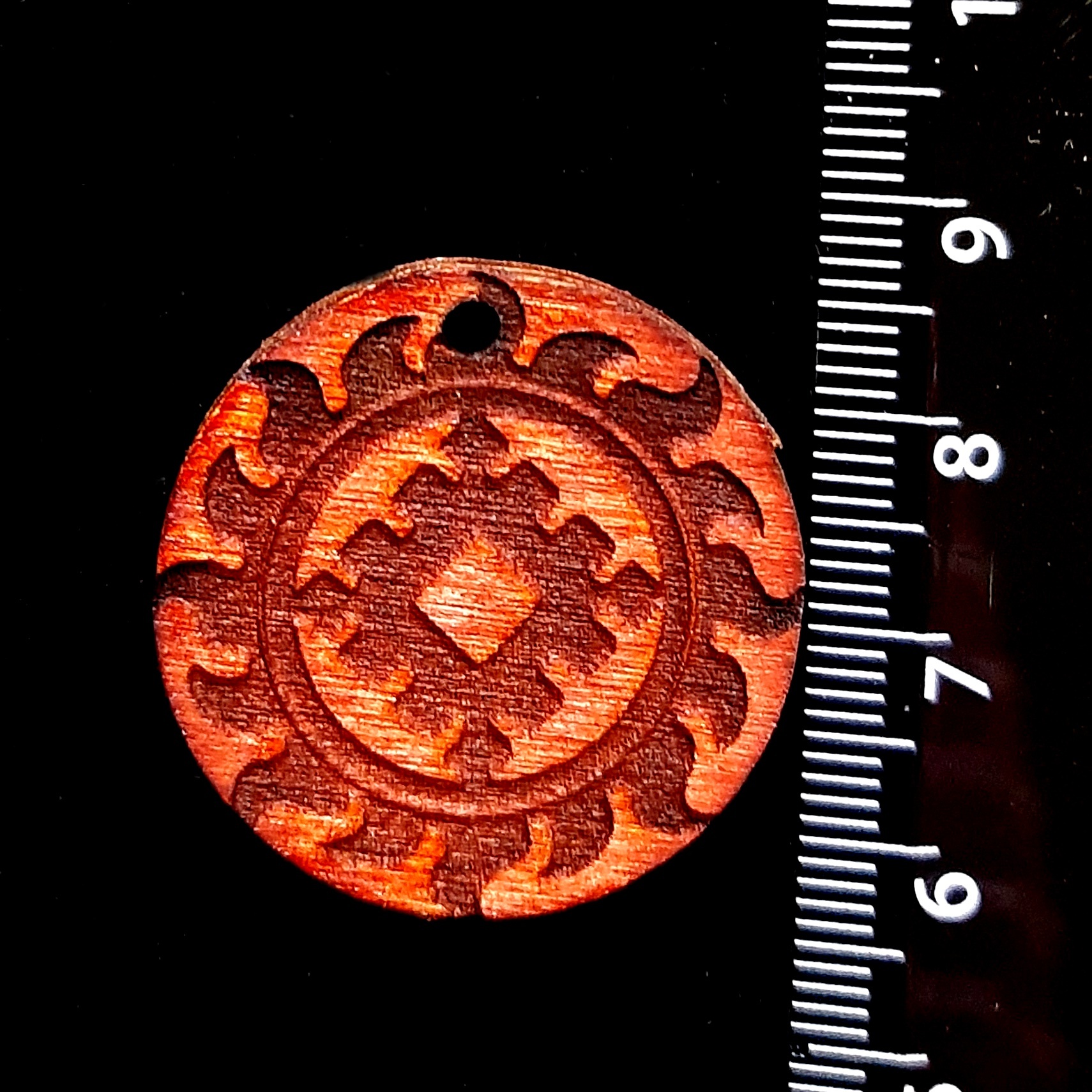 Славянский деревянный оберег "Репейник удачи". Материал береза. Цвет Красное дерево. Длина шнура 50 см. Диаметр 3 см