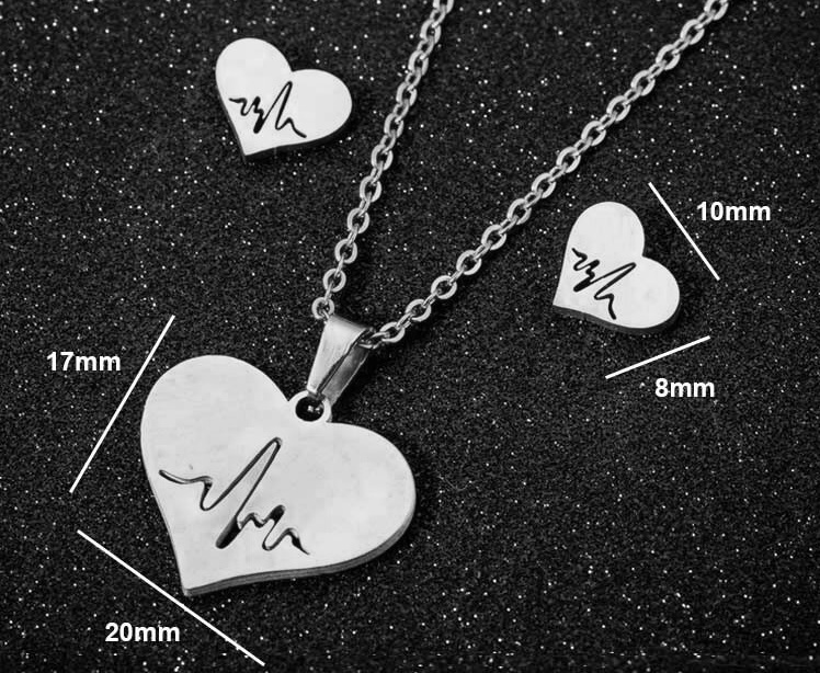 Стальной комплект украшений "Сердце" (серьги, кулон, цепочка).