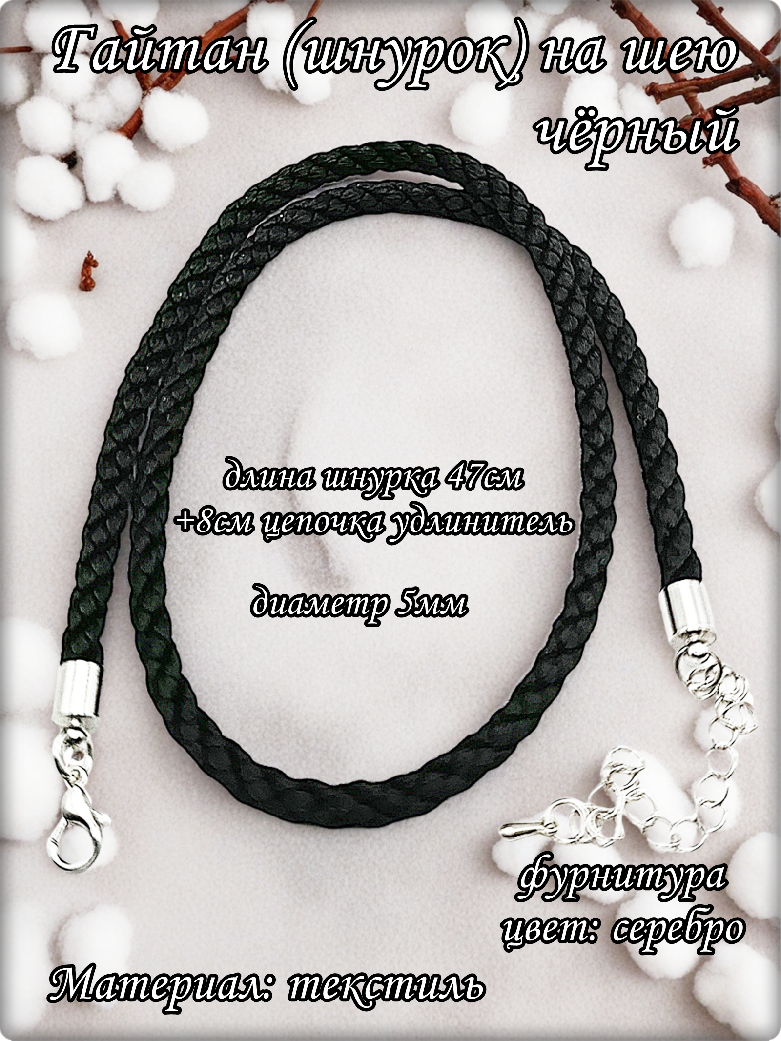 Длина шнура 47см, диаметр 5мм.