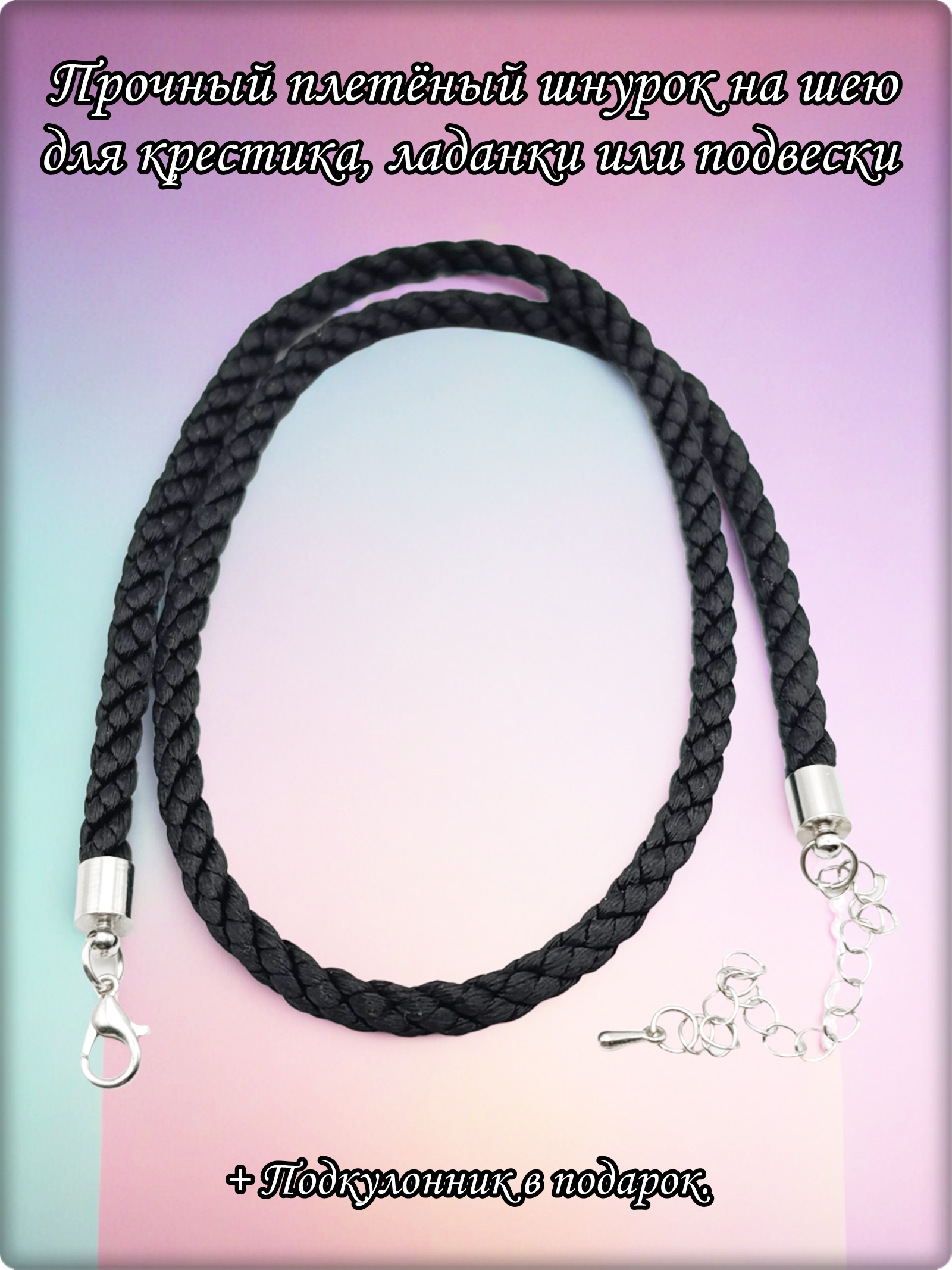 Прочный плетёный текстильный шнурок на шею для крестика, ладанки или подвески (гайтан). Подкулонник в подарок.