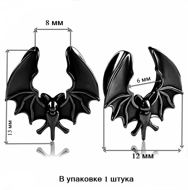 Тоннель "Летучая мышь" для пирсинга ушей 8 мм.