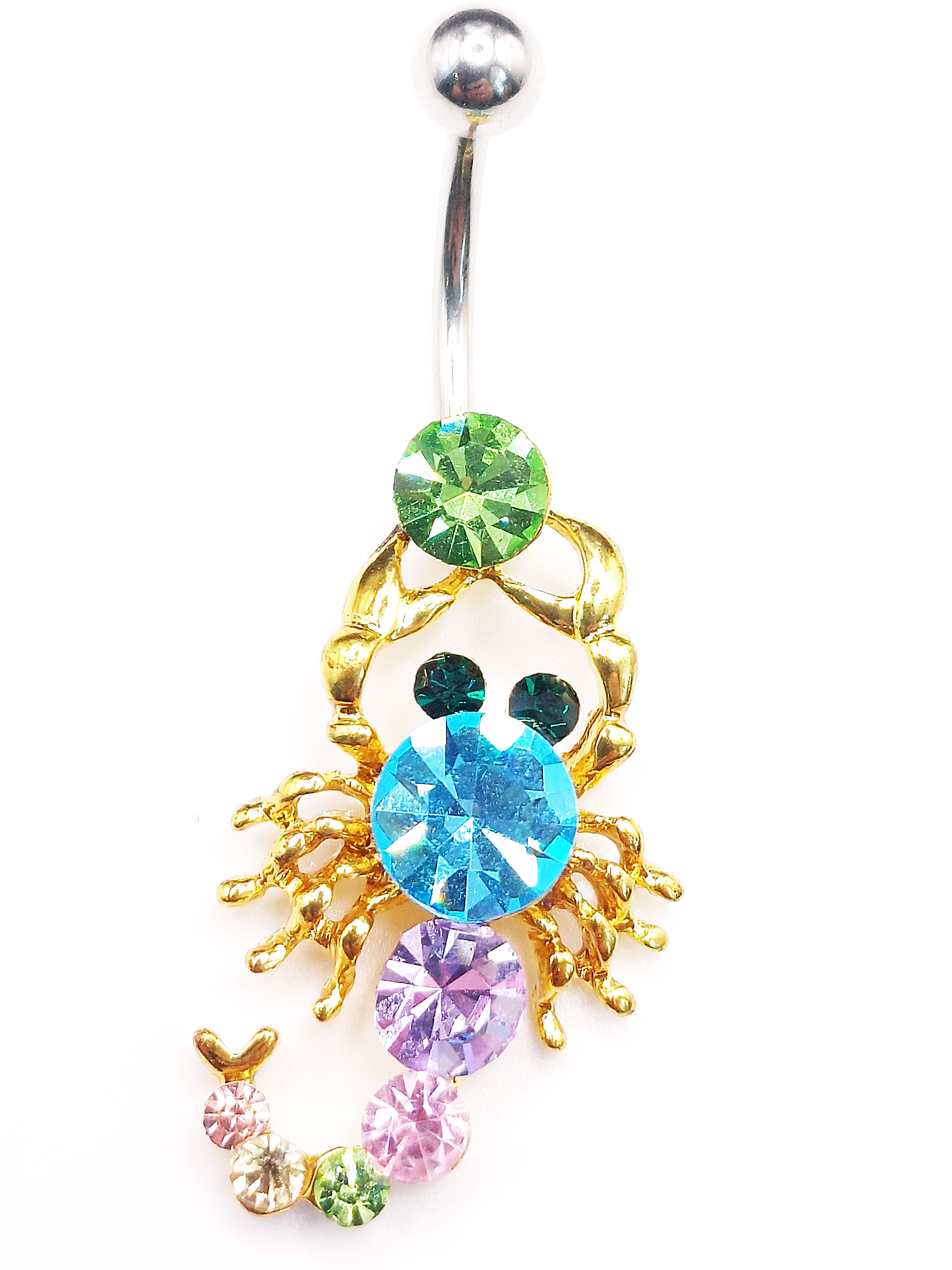 Украшение для пирсинга пупка " Скорпион" с цветными кристаллами