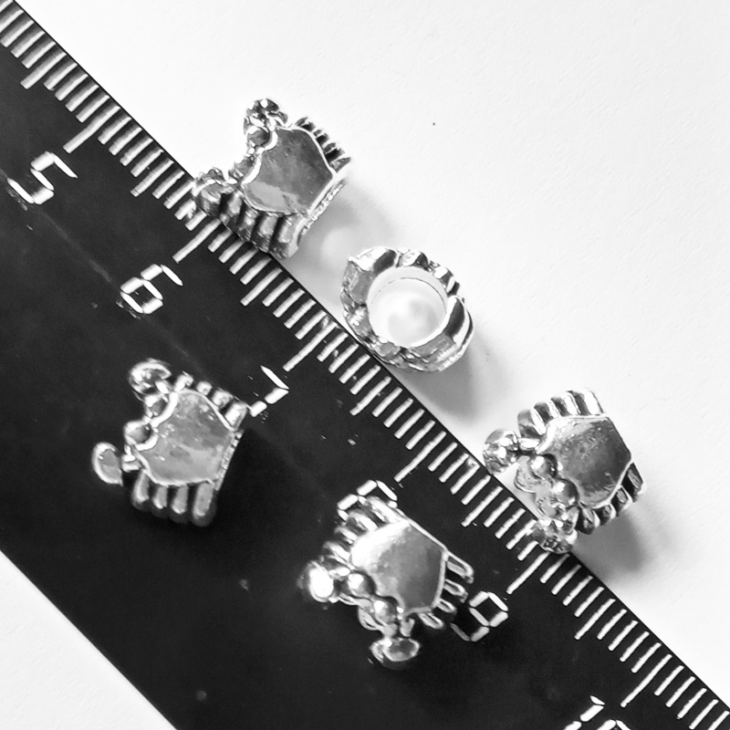Украшения для бороды, дредов, косичек "Крабик" . Бусины металлические серебристые (отверстие 4мм). Набор 5 шт.