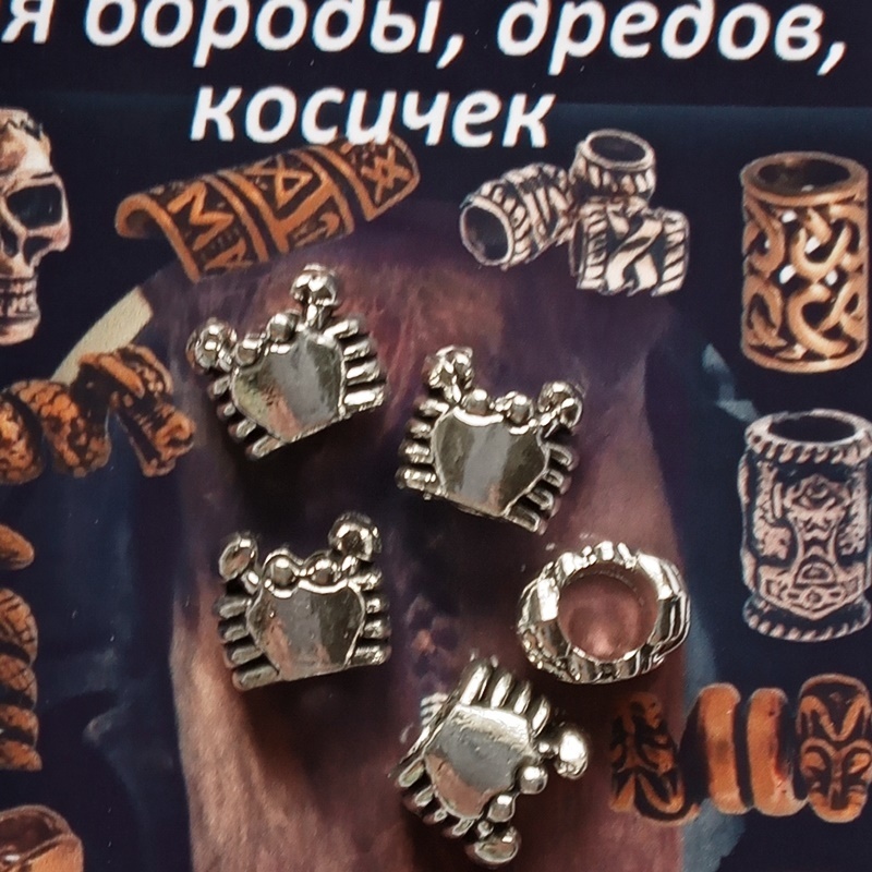 Украшения для бороды, дредов, косичек "Крабик" . Бусины металлические (отверстие 4мм). Набор 5 шт.
