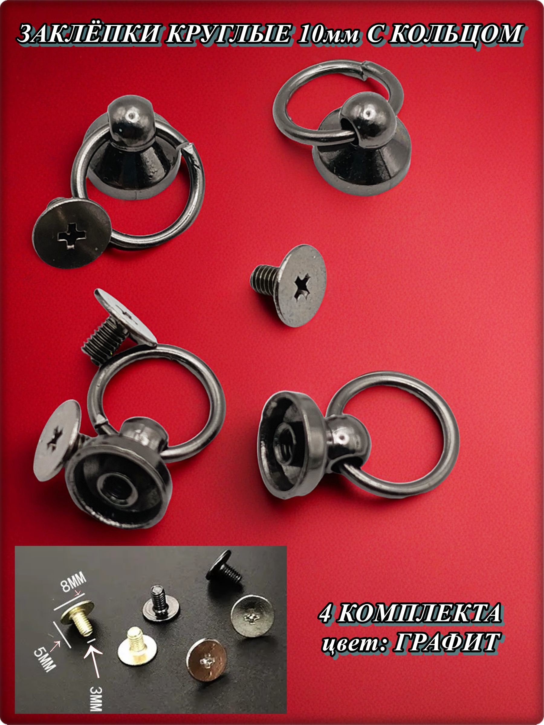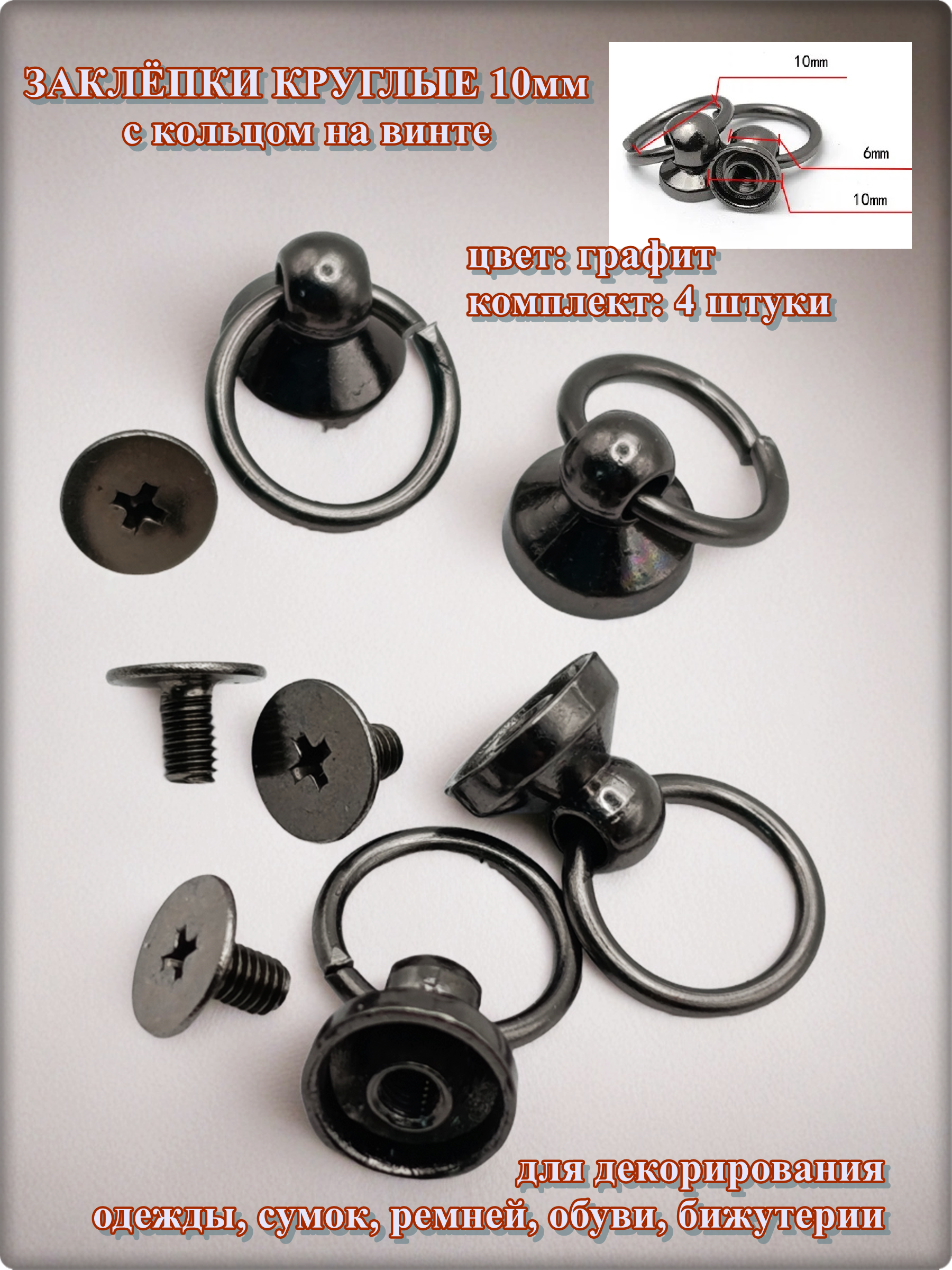 Основание: 10мм. Высота с кольцом: 16мм. Форма: круглая. Материал: цинковый сплав