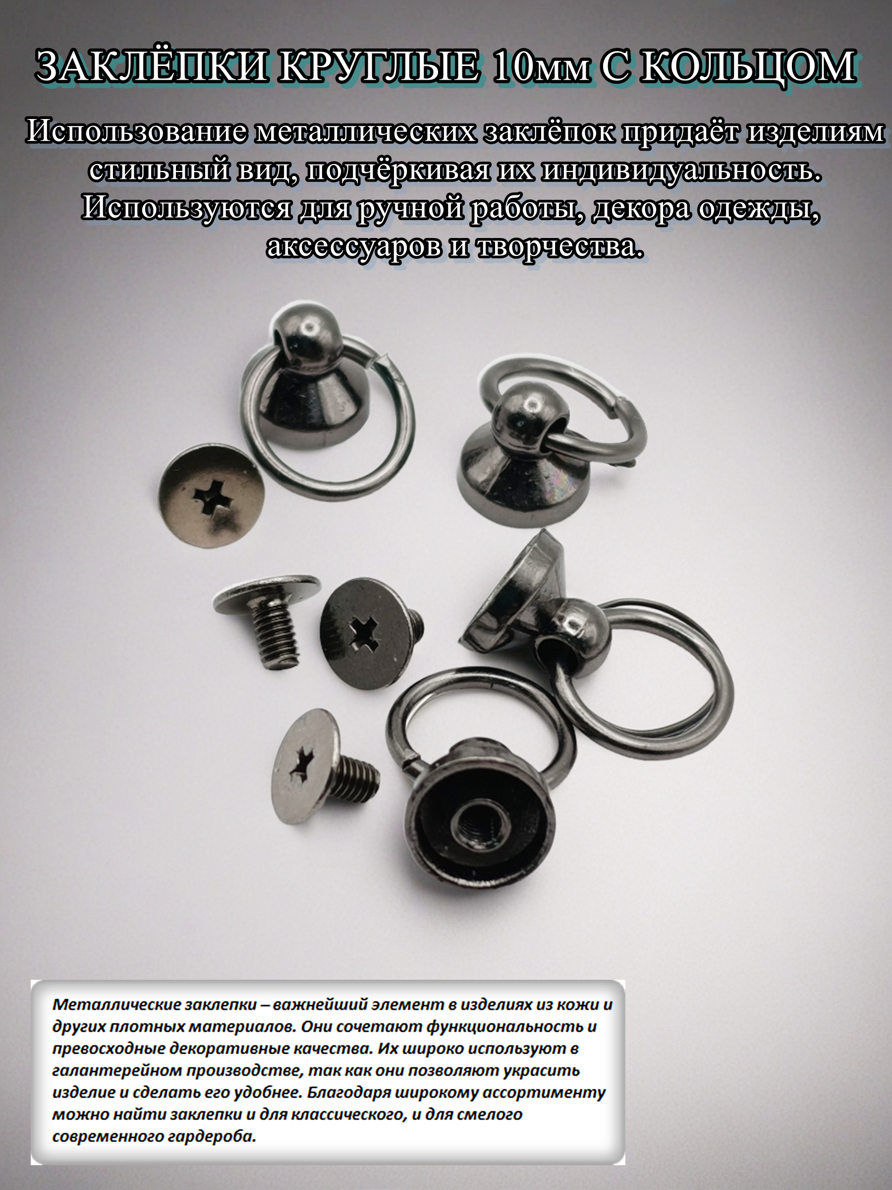 Эти заклёпки от бренда Djeam идеально подходят для украшения изделий из кожи, тканей и прочих материалов. Использование металлических заклёпок придаёт изделиям стильный вид подчёркивая их индивидуальность и качество. Используются для ручной работы, декора одежды, аксессуаров и творчества. Компактны, просты в применении, обеспечивают надёжное соединение. Подходит для стиля кэжуал, гранж, панк и повседневного образа.