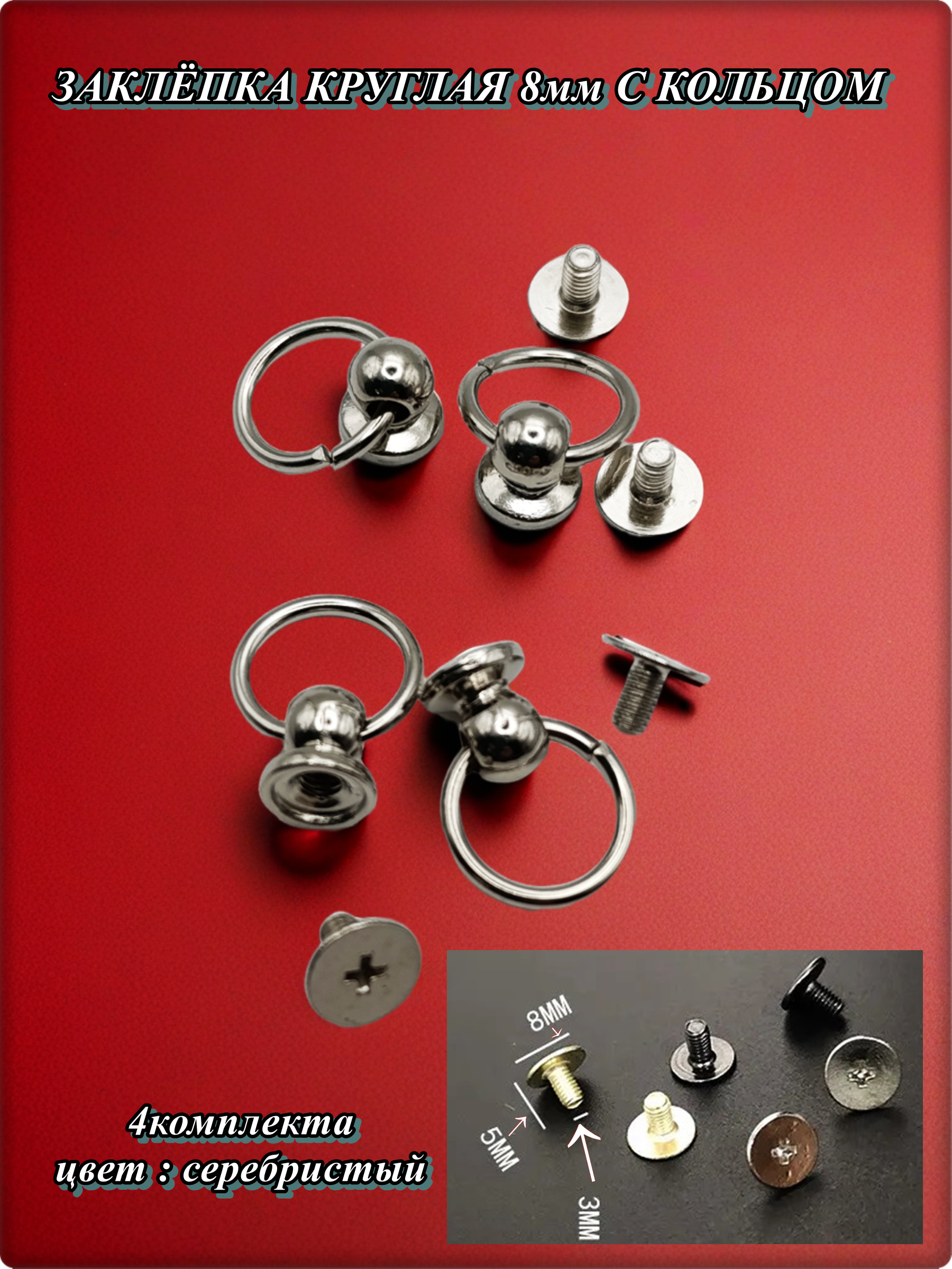 Основание: 8мм. Высота с кольцом: 16мм. Форма: круглая. Материал: цинковый сплав